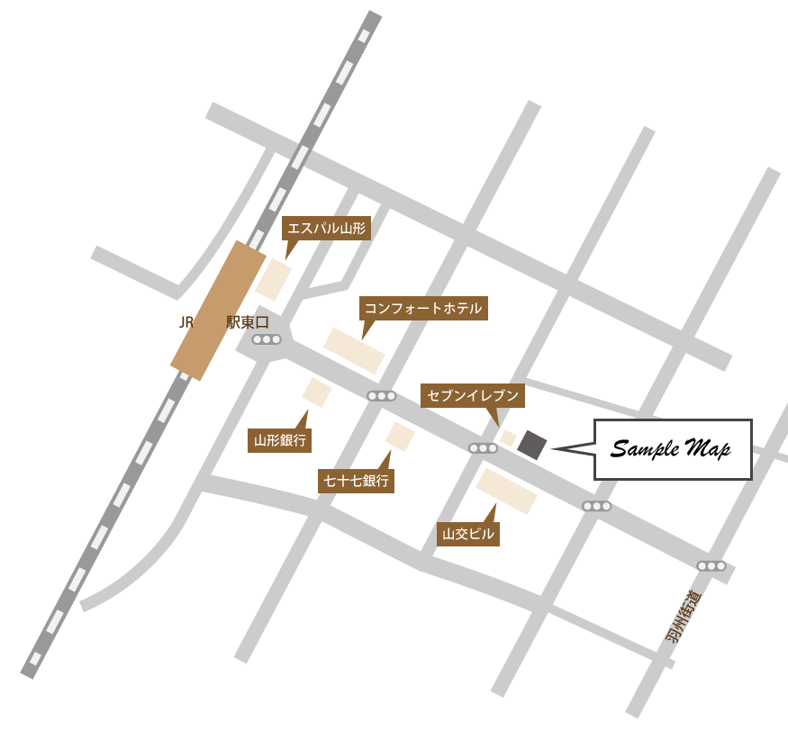 - 東京メトロ 〇〇線 〇〇駅南口改札 徒歩5分